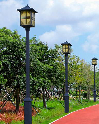 太阳能夏河庭院灯以太阳辐射能为能源,白天利用太阳能电池板给蓄电池充电,晚上蓄电池给庭院灯光源供电使用,无需复杂昂贵的管线铺设,可任意调整灯具的布局,安全节能无污染,充电及开/关过程采用智能控制,光控自动开关,无需人工操作,工作稳定可靠,节省电费,免维护。